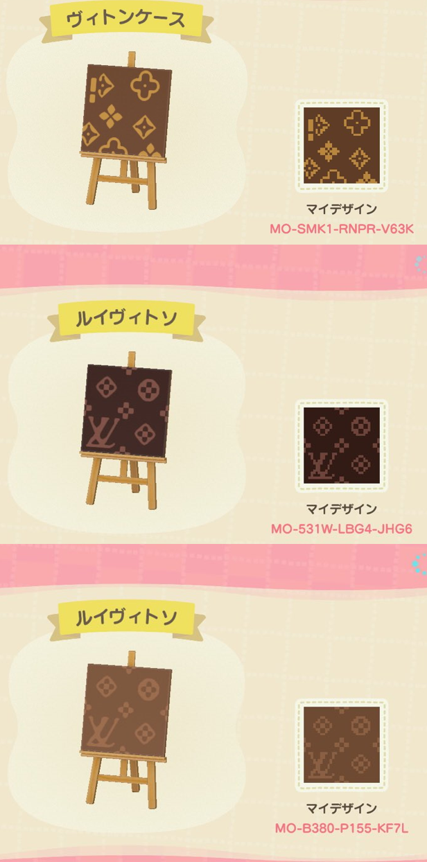 모여봐요 동물의 숲 에서 사용할 수 있는 마이디자인 중 루이뷔통 마이디자인을 모아봤습니다.