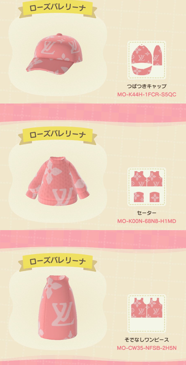 먼저 루이뷔통의 모노그램을 활용한 핑크 디자인의 모자와 스웨터, 원피스 입니다.