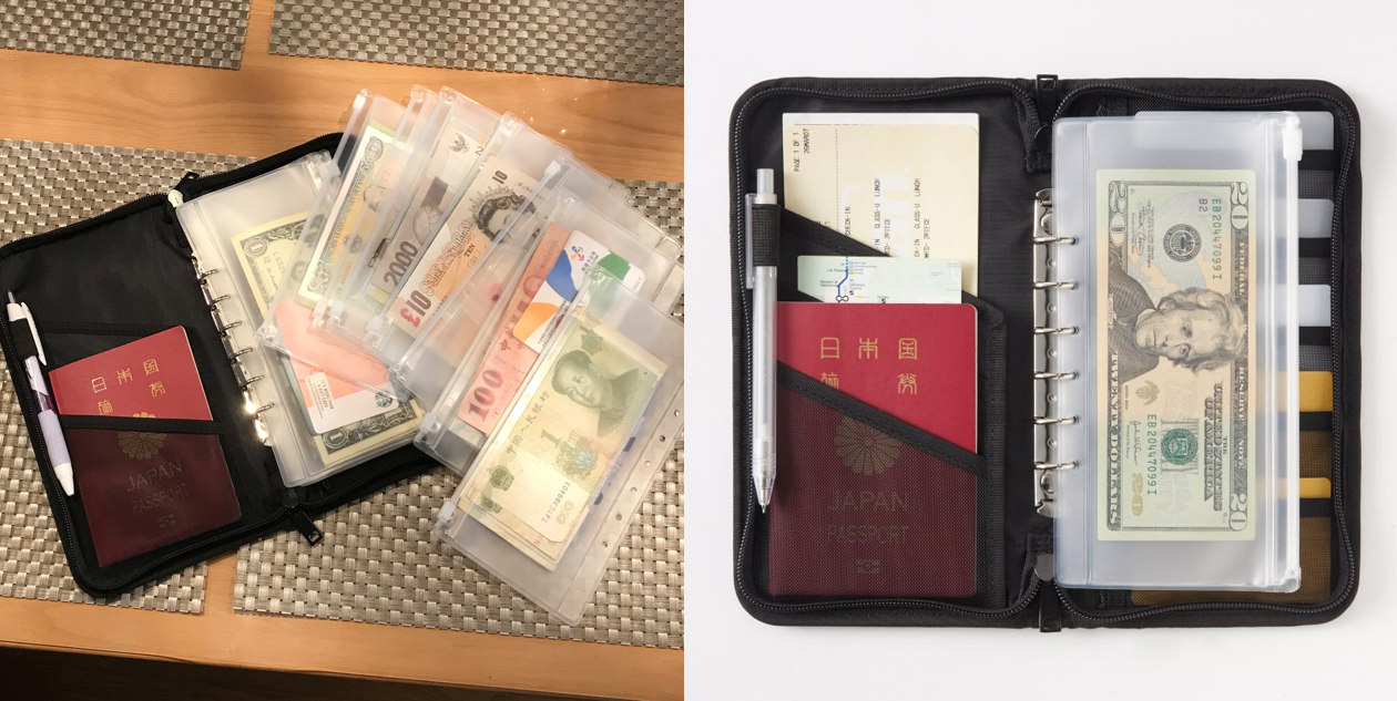 무인양품의 여권 케이스는 그런 점에서 매우 유용합니다. 다이어리 형태로 사용할 수 있고 파우치도 추가할 수 있기 때문에 여권, 티켓 뿐만 아니라 여행지의 현금도 보관할 수 있어요