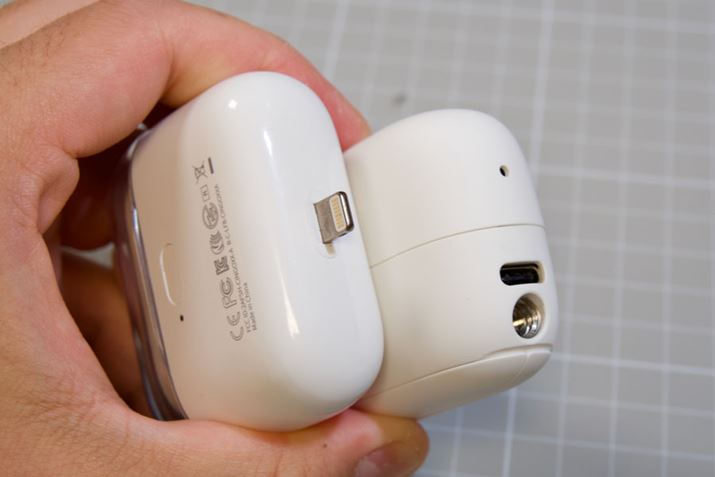 전용 충전 케이스의 경우에도 기존과 달리 일체형 커버를 갖추었으며 USB-C 포트로 교체 된 것이 특징입니다.