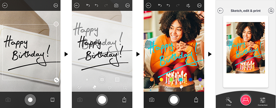 손글씨나 그림 등을 스마트폰 카메라로 촬영한 뒤, 다른 사진에 합성하여 사진 출력이 가능한 기능입니다.