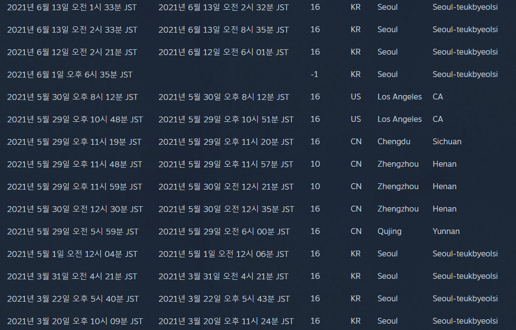 - 해당 단계 까지 진행하면 아래와 같이 접속기록이 나타납니다.