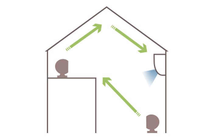 만약, 복층 구조의 환경에서 에어컨을 사용할 때 시원해지지 않는 공간이 있다면 아래와 같이 서큘레이터 2대를 사용하면 효과적으로 냉기를 집안 전체로 순환시킬 수 있습니다. 복층에 쌓인 따뜻한 공기를 밀어내고, 아래에서 냉기를 올려보내주는 형태로 효과적으로 실내 공기를 순환 시킬 수 있습니다.