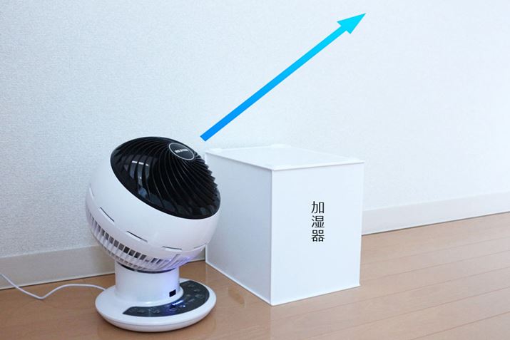 가습기 바로 근처에 서큘레이터를 두고 대각선 위를 향하여 방 전체에 습기를 보내는 효과를 얻을 수 있습니다.