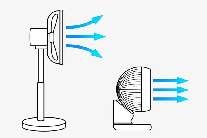 선풍기의 경우 바람을 퍼트리는 과정에서 냉기가 흩어지게 되지만 에어서큘레이터의 경우 냉기의 손실이 적게 하여 다른 곳으로 보낼 수 있다고 합니다.
