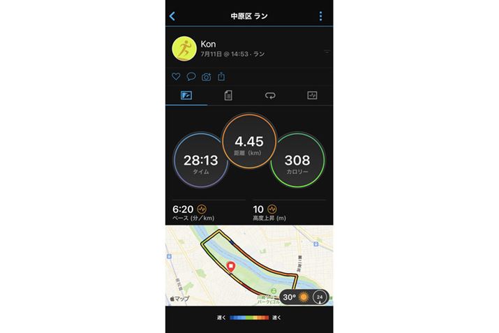 또한 지금까지의 건강관리 기능 이외에도 가민의 GPS를 활용한 스포츠 데이터 측정에도 매우 우수하였습니다.