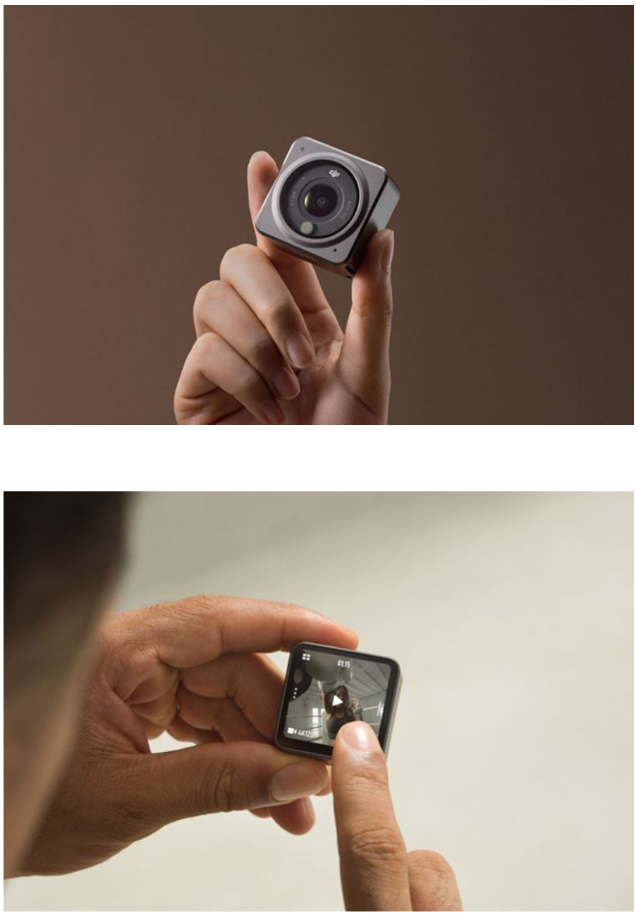 DJI Action 2 모델은 39x39x22.3mm, 중량 56g 으로 아주 작은 크기와 중량을 갖춘 초소형 액션 카메라입니다.