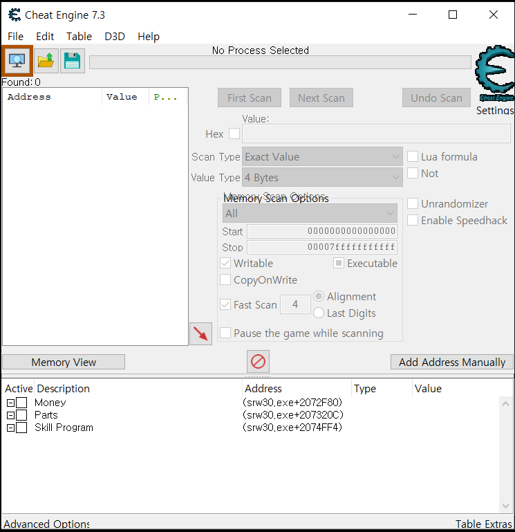 치트엔진 설치 완료 / srw30.CT 파일 다운로드 완료가 되었으면 아래의 순서대로 따라해주시면 됩니다.