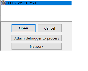 3. 왼쪽 위 [File] 아래쪽에 모니터 위 돋보기를 눌러서 프로세스 중 SRW30을 선택합니다.
