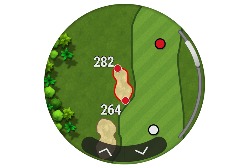 또한, 코스의 고저차, 현재의 풍속/풍량, 공기밀도 등의 정보가 표시되며 현재 상황에서 그린까지 필요한 거리를 알려줍니다. 또한 과거의 스윙 데이터를 학습하여 현재의 풍속/풍향과 코스 데이터를 활용하여 현재 필요한 가장 최적의 클럽을 제안하는 가상 캐디 기능과 함께 스윙 후 예상 지점등을 표시하는 기능 까지 갖추고 있습니다.