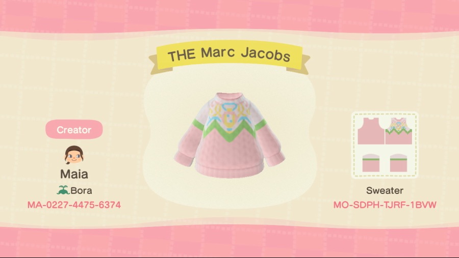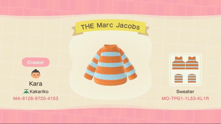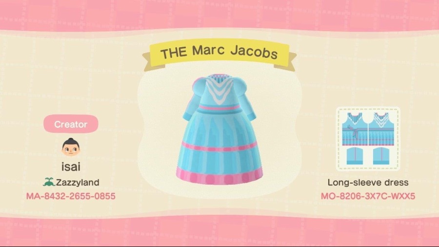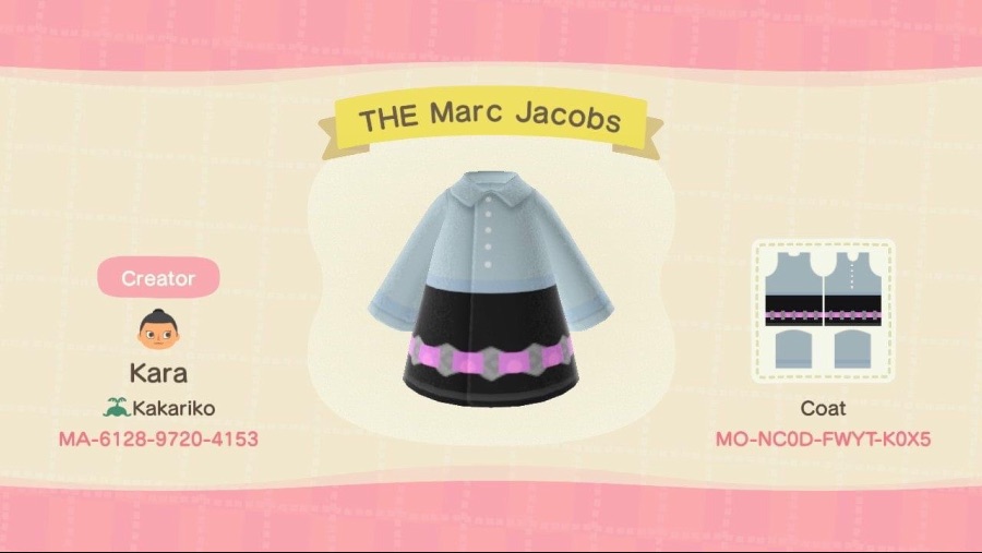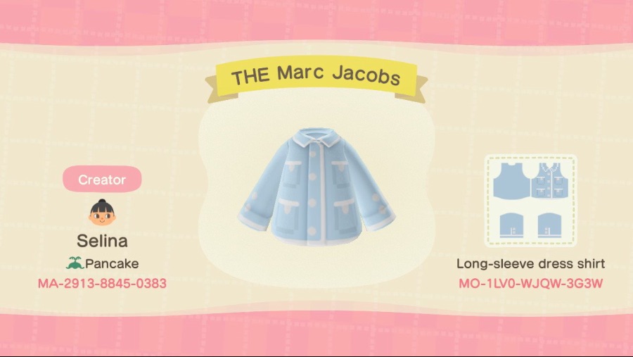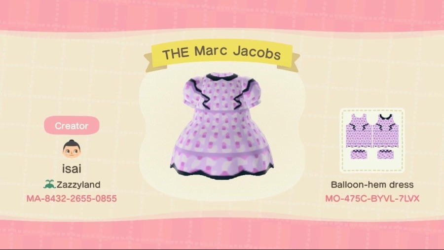 이번에는 미국의 유명 디자이너 레이블 "마크 제이콥스" 에서 공개한 동물의 숲 의상 코드 입니다.