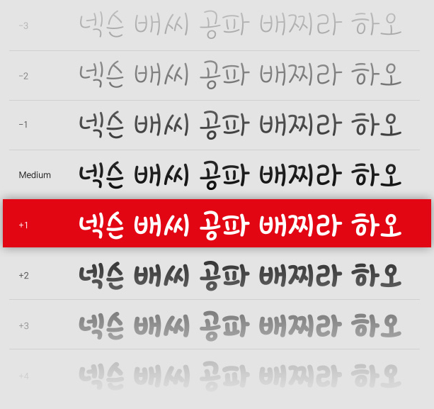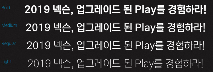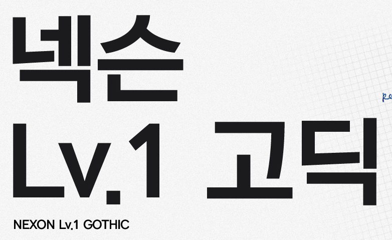 LEVEL UP의 첫 단계로 게임에서 경험했던 느낌을 서체에 담아 표현했습니다. 서체의 기능적인 부분 외에도 즐거운 경험들을 전달하고자 하는 또 다른 도전의 시작입니다.